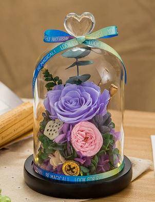 永生花玫瑰玻璃罩小熊圣诞树创意生日礼物情人节送女友闺蜜带遥控