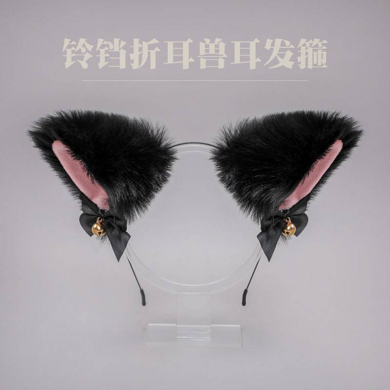 日系可爱毛绒铃铛蝴蝶结Lolita头饰狐狸耳配饰猫耳朵发箍