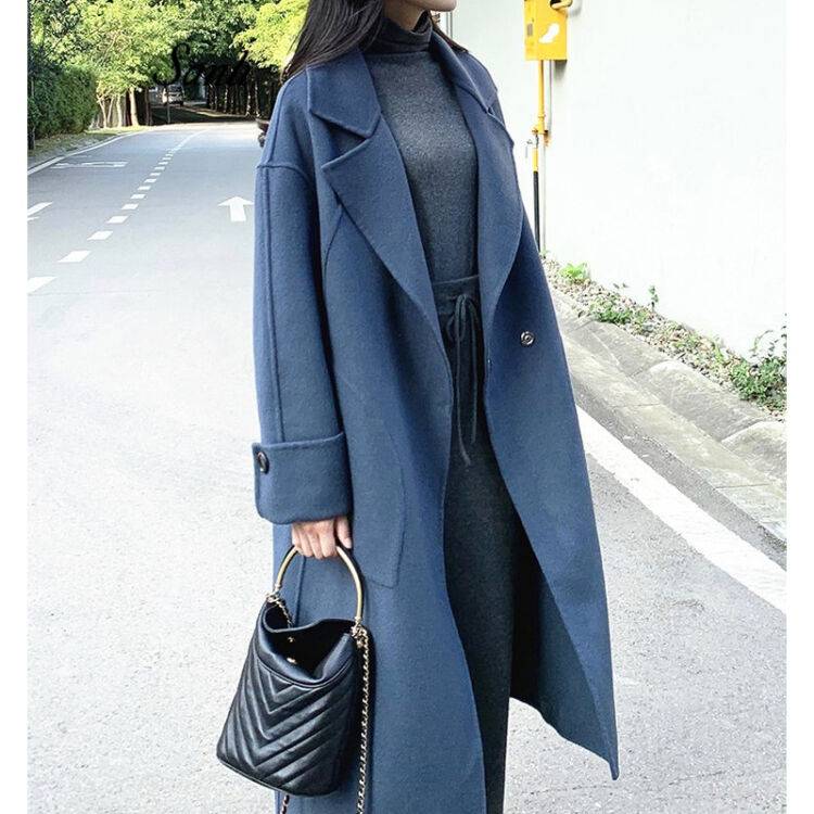 2019新款毛呢外套女装中长款小个子双面呢羊毛绒大衣腰带显瘦