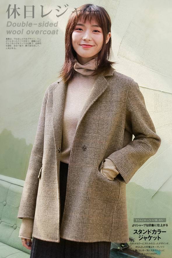 ZOJ手缝羊毛双面绒外套格子大衣女西装新款秋冬毛呢女装