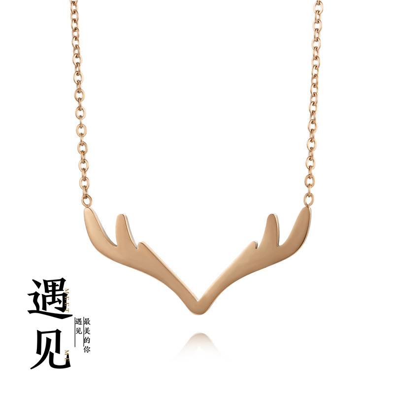 Meet Me 鹿角饰品项链 一鹿有你项饰时尚锁骨链钛钢项链