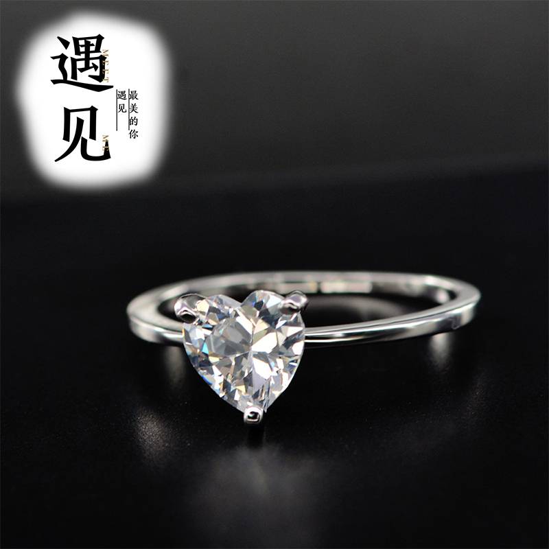 遇见 甜蜜爱心三爪戒指简约大方超闪仿真钻手饰可定做纯银款