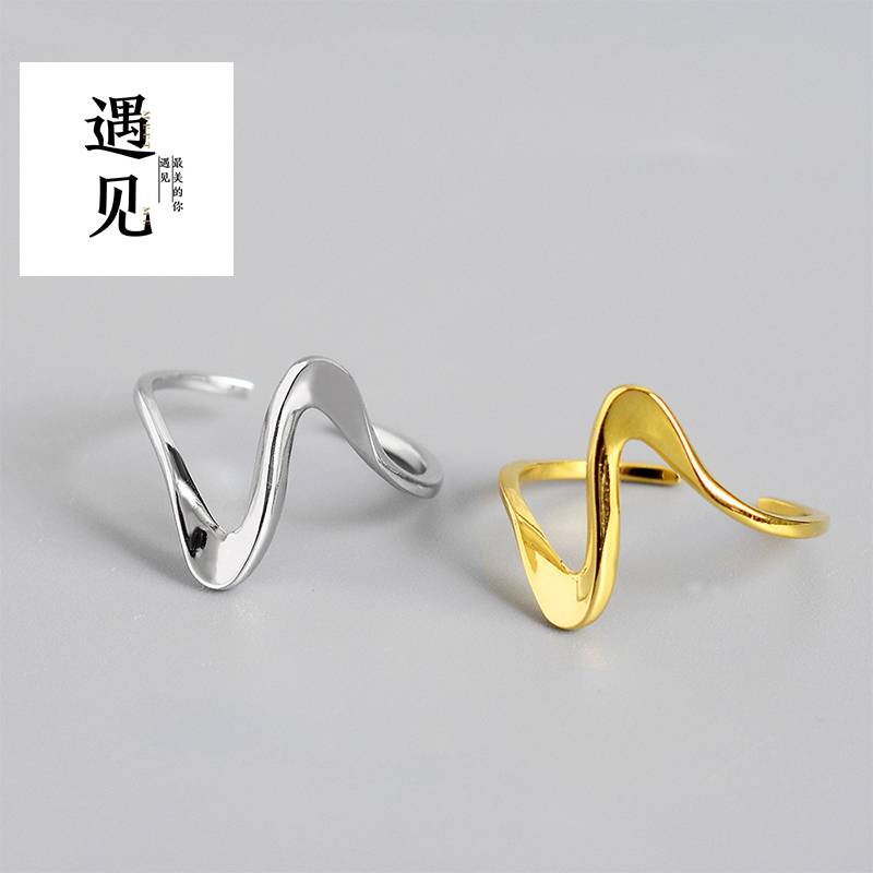 个性极简波浪纹指环s925纯银戒指chic韩式女款气质银戒潮流饰
