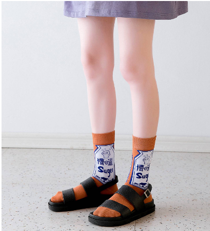 中长袜子女中筒袜ins潮流日系可爱韩版薄款纯棉夏季搞怪卡通夏天
