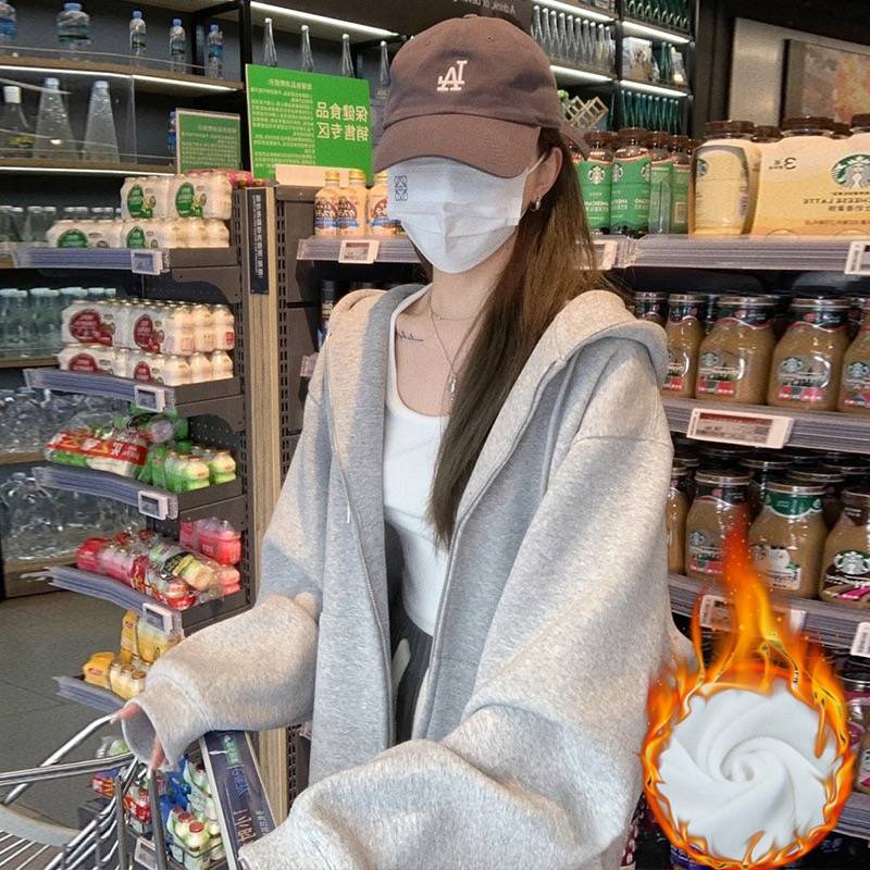 卫衣外套女2024开衫早春新款灰色拉链薄开衫连帽小个子上衣秋冬款http://detail.m.1688.com/pag