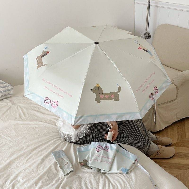 可爱全自动腊肠狗晴雨雨伞两用折叠防晒遮阳伞黑胶紫外线太阳伞