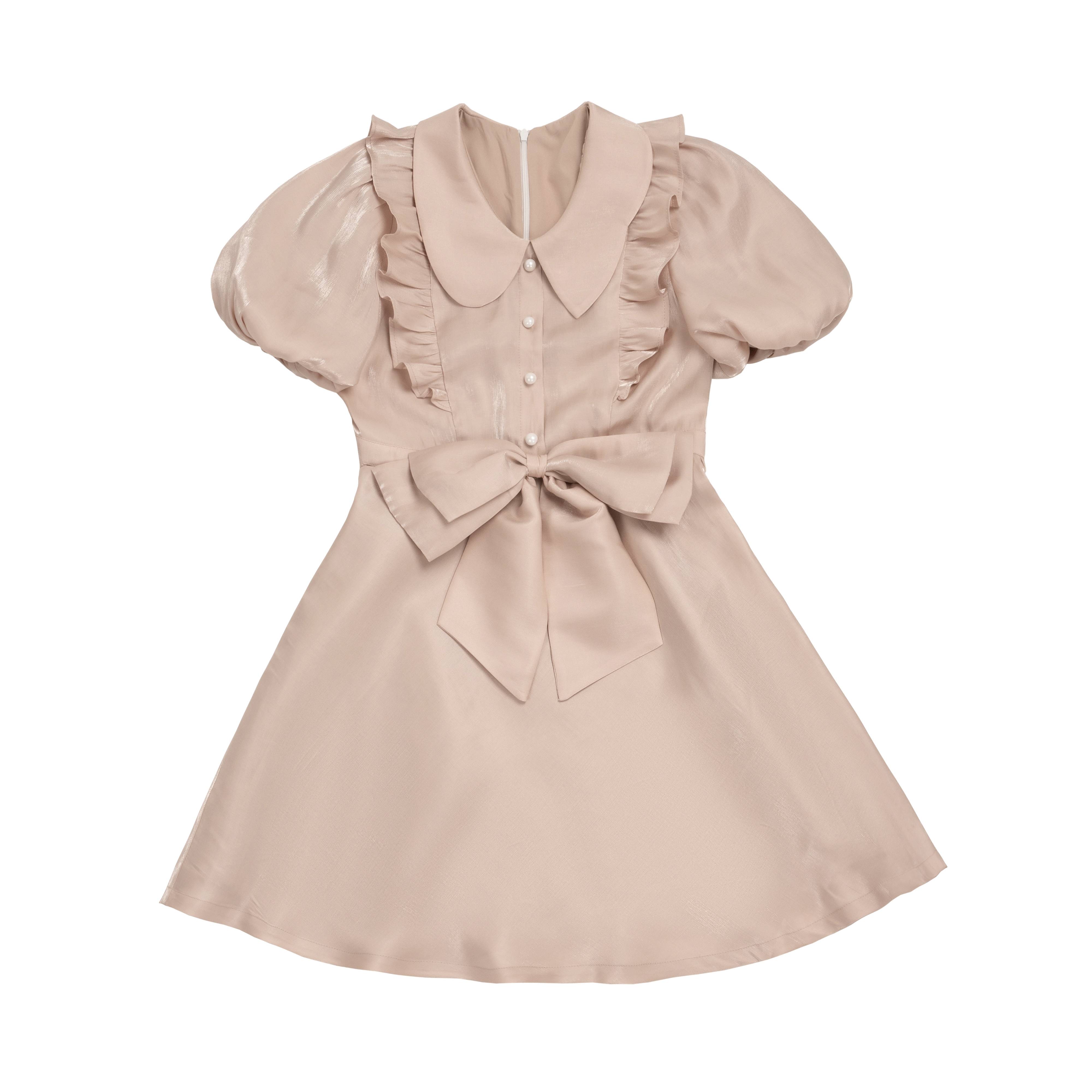 夏季连衣裙女ninii【人间精灵】浅金色细闪高级灰花边华丽装饰夏日梦幻裙粉色少女心蝴蝶结泡泡袖连衣短裙