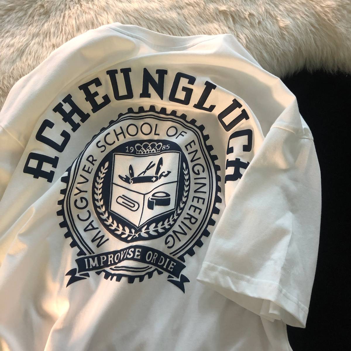 美式复古ulzzang发泡印花字母夏纯棉圆领短袖t恤女oversize半袖潮