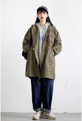 RCDB日系立体口袋工装风衣男女同款BF风宽松学生中长款上衣外套潮