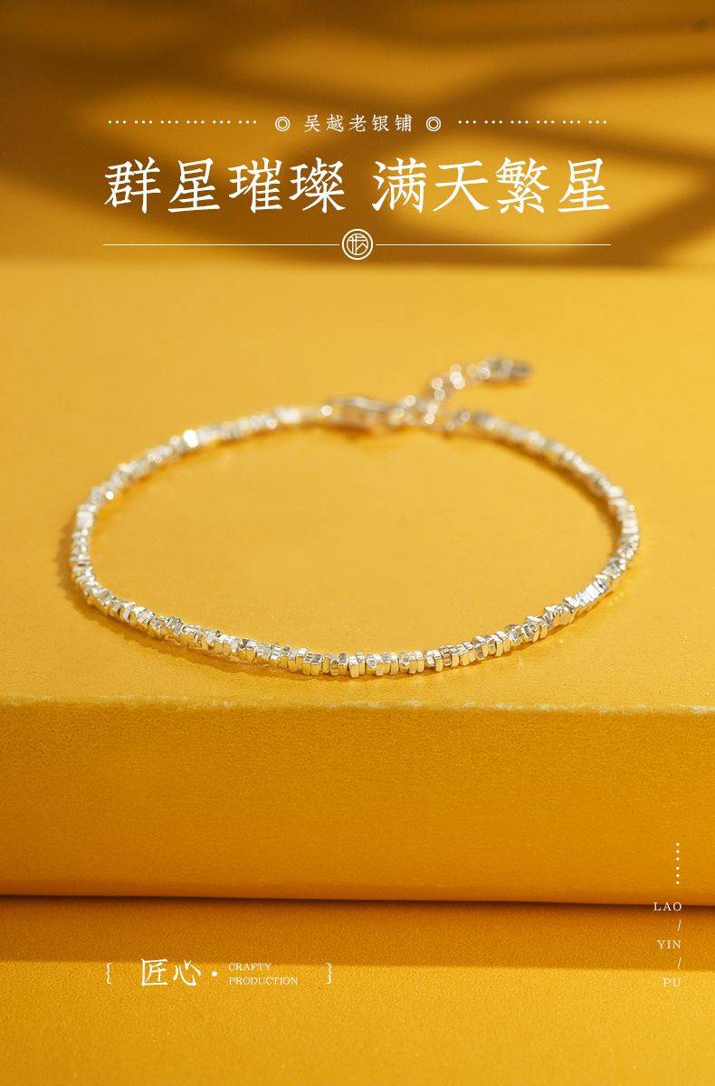 吴越老银铺S925银碎银几两手链纯银女时尚ins碎银子520礼物送女友