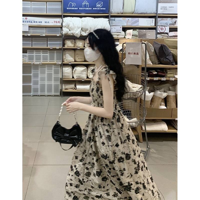 法式气质碎花吊带裙长款长裙甜辣风连衣裙女夏小个子显瘦辣妹裙子