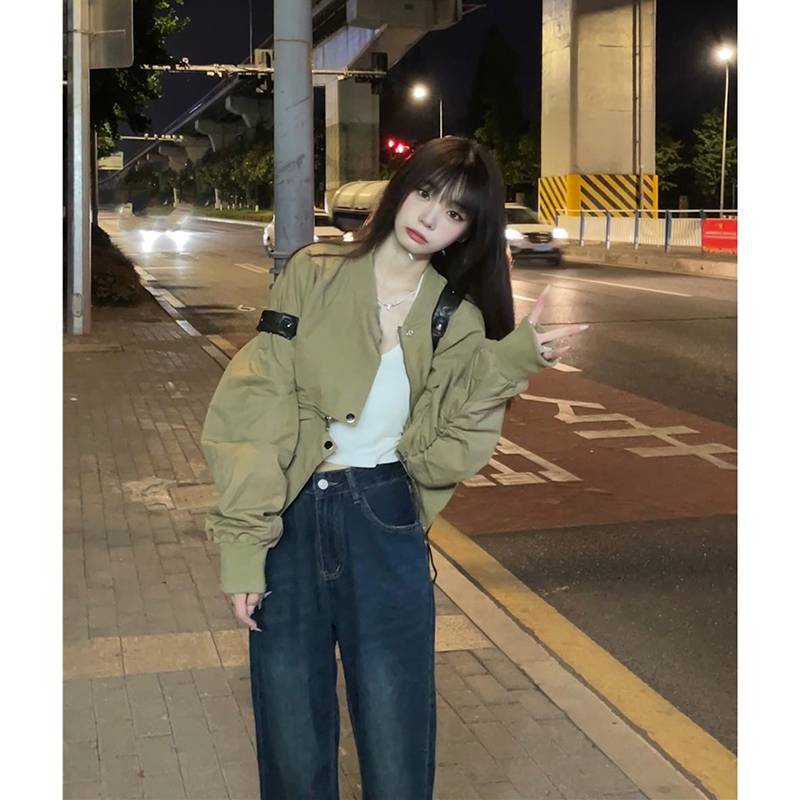 设计感拉链长袖工装外套女早秋2022新款甜酷宽松流行短款夹克上衣