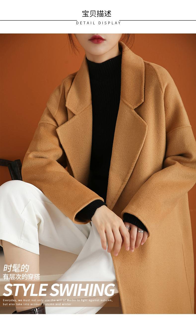 2019新款毛呢外套女装中长款小个子双面呢羊毛绒大衣腰带显瘦