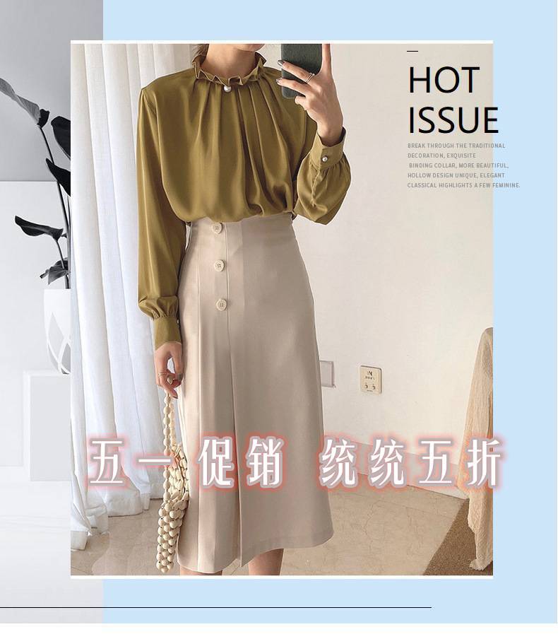 乐町气质法式衬衫连衣裙春装2021女装白色翻领气质甜美连衣裙子