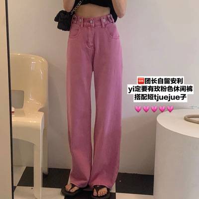 粉色直筒裤休闲裤女2022年夏季新款百搭韩版高腰牛仔长裤