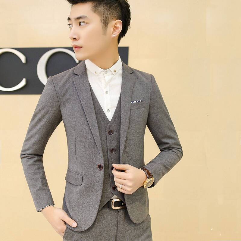 休闲西装男套装韩国简约百搭夏天薄款九分裤社会小伙精神修身中袖