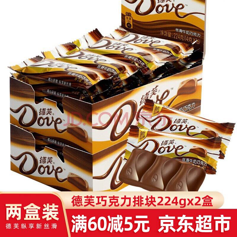 德芙巧克力 送女友丝滑牛奶巧克力 休闲零食224gX2盒装