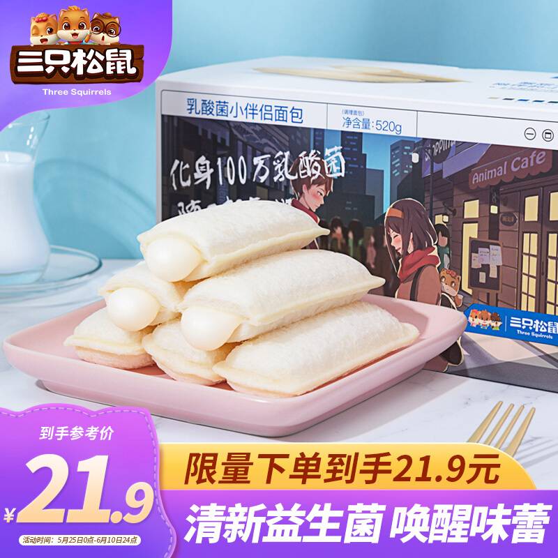 三只松鼠乳酸菌小伴侣面包 蛋糕糕点520g/箱