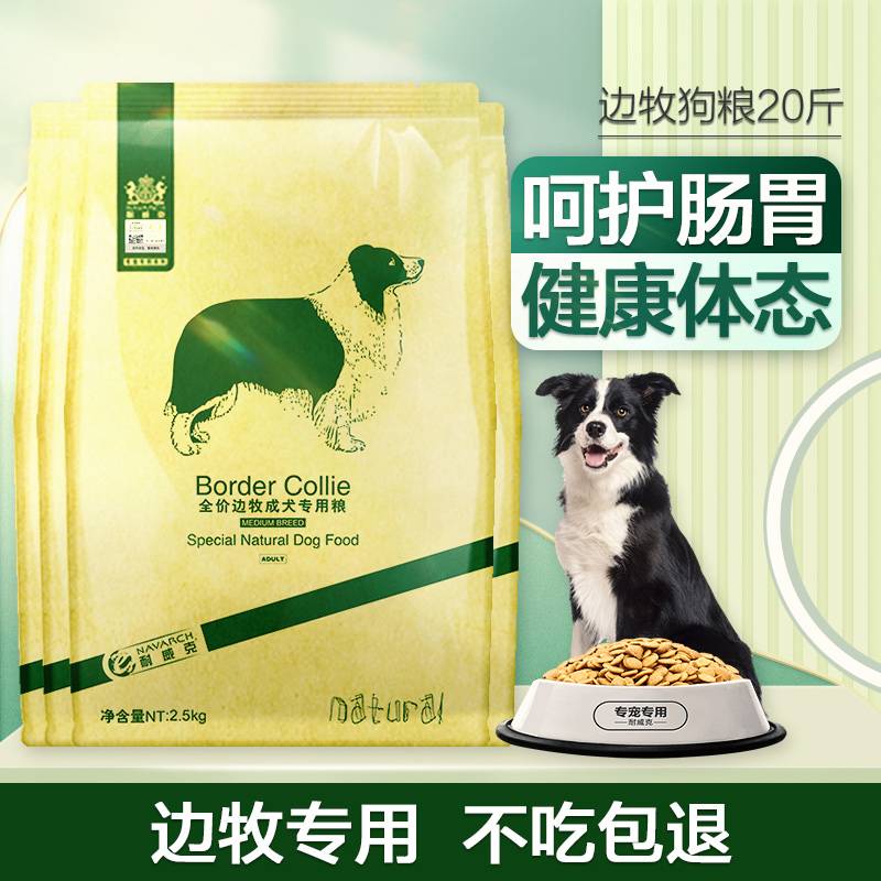 狗粮边牧主粮中大型犬成幼犬专用20斤10kg大袋零食实惠套装