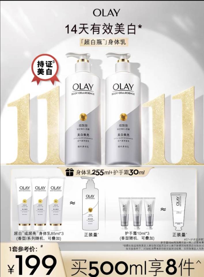 OLAY玉兰油超白瓶美白身体乳女秋冬全身保湿滋润持久留香官方正品