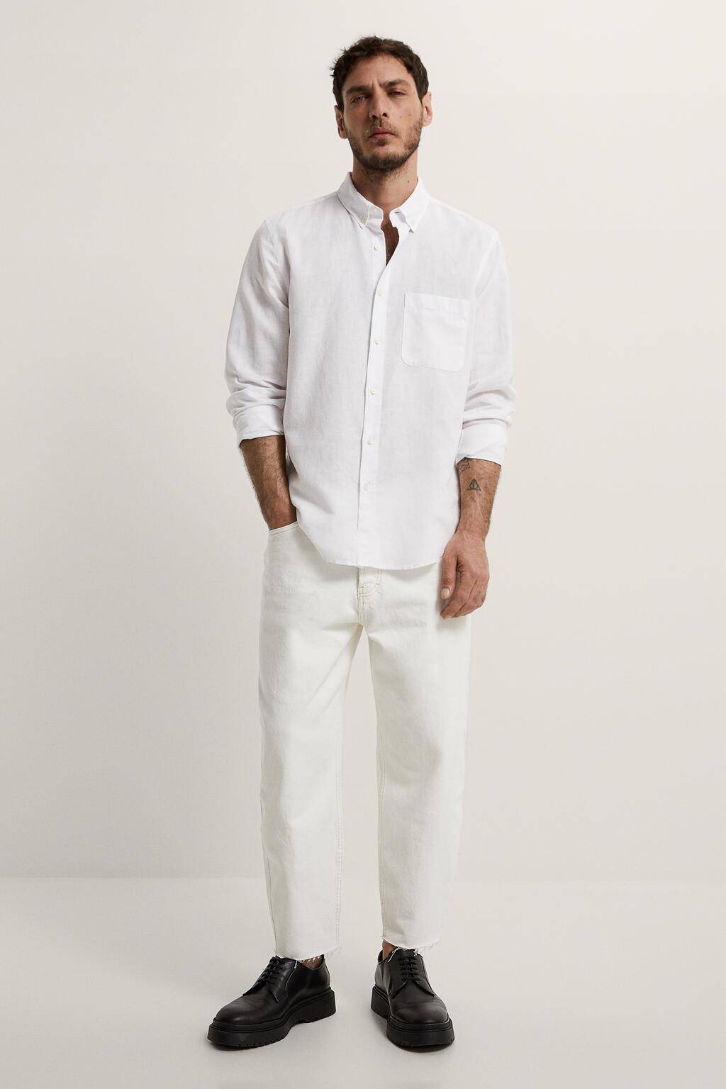 ZARA 新款男装 宽松薄款 棉亚麻混纺长袖白色衬衫 07545304250