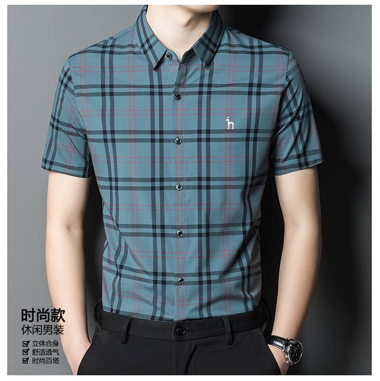 Hazzys哈吉斯衬衫男短袖夏季薄款冰丝休闲商务男装格子半袖衬衣潮