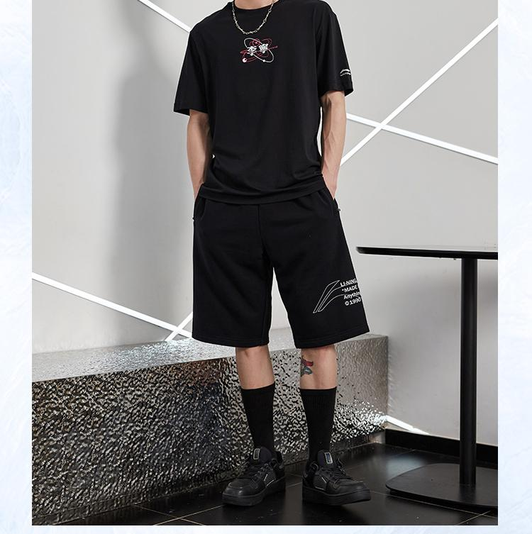 李宁短袖男2021夏季新款时尚男装休闲纯棉半袖宽松印花运动t恤男