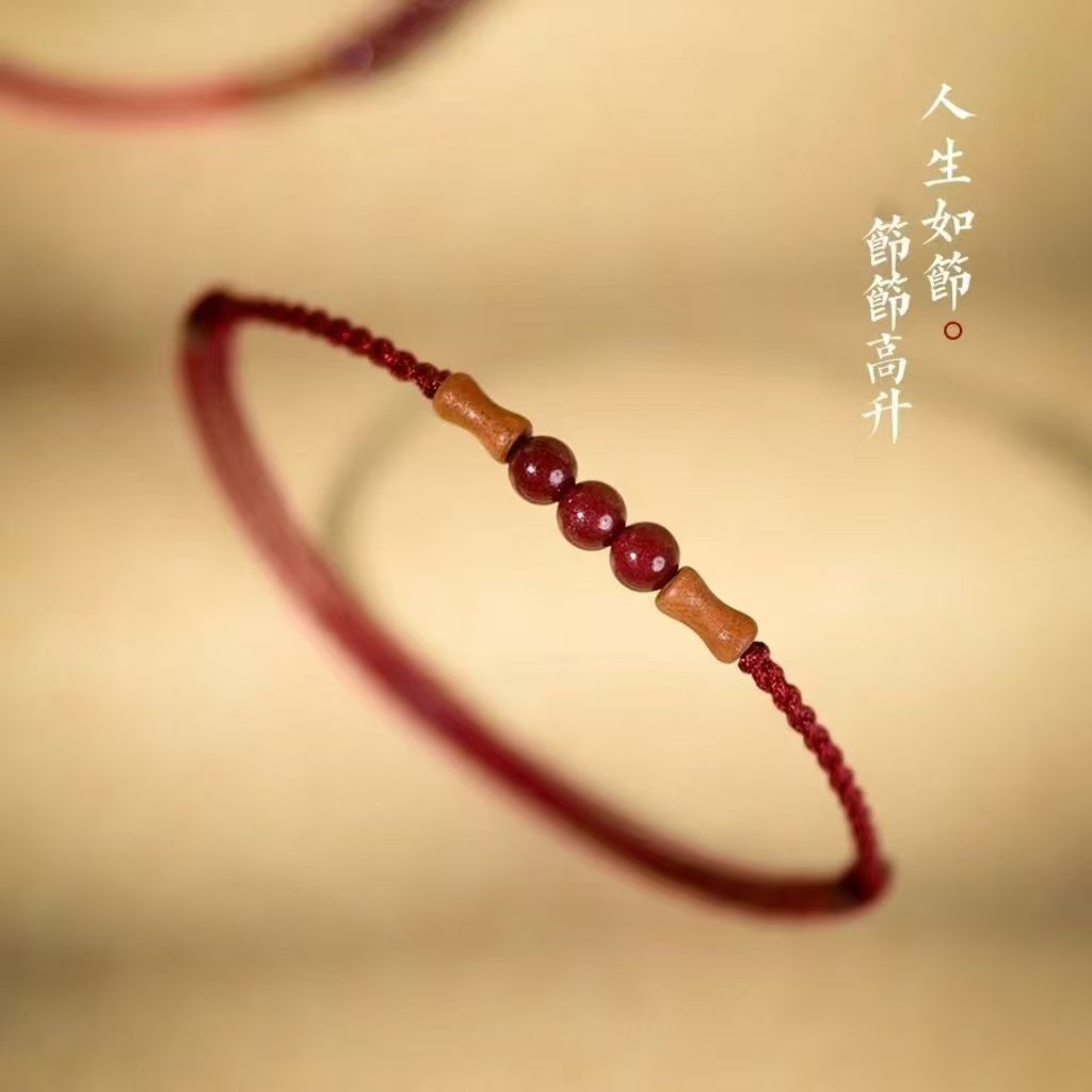 天然朱砂桃木竹节手绳