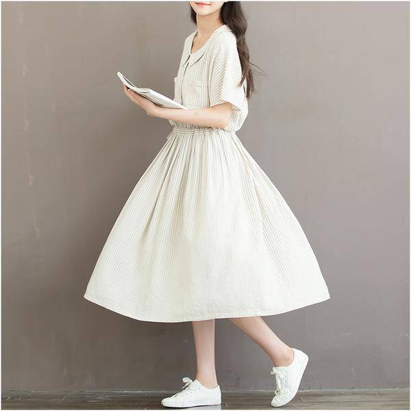 韩系小众 复古港味 单排扣 棉麻舒适透气 收腰连衣裙