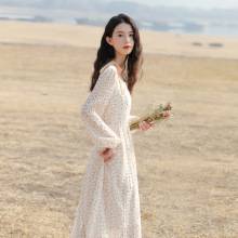 春装2021年新款女气质温柔风裙子仙女敲仙森系雪纺碎花连衣裙长款