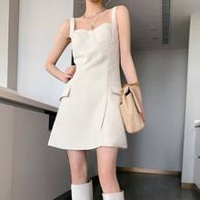 吊带连衣裙女夏季2021新款韩版宽松V领中长款打底A字裙白色长裙子
