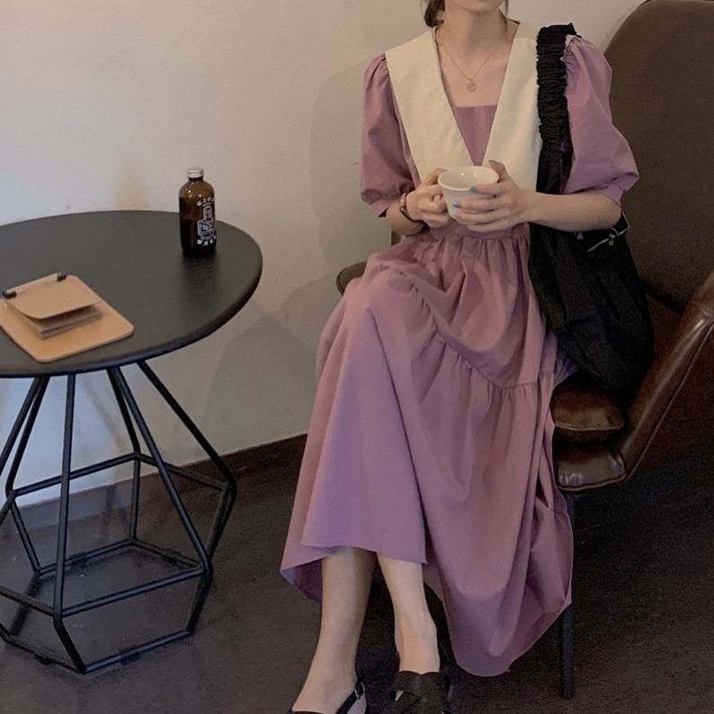 夏季连衣裙2021年新款法式泡泡袖小个子收腰显瘦高腰韩版气质大码