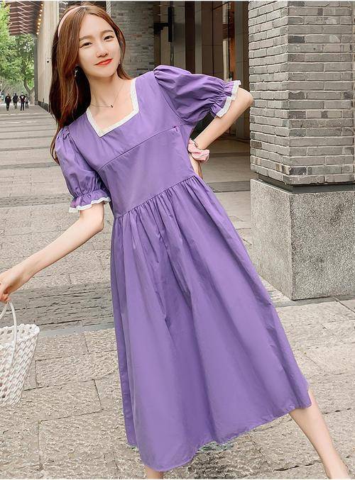夏季显瘦短袖女装连衣裙长裙简约简单小清新轻薄款2022夏季新品服装