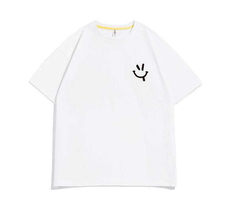 夏季服装微笑表情男装T恤白色简约轻薄宽松短袖休闲款圆领拼色22年