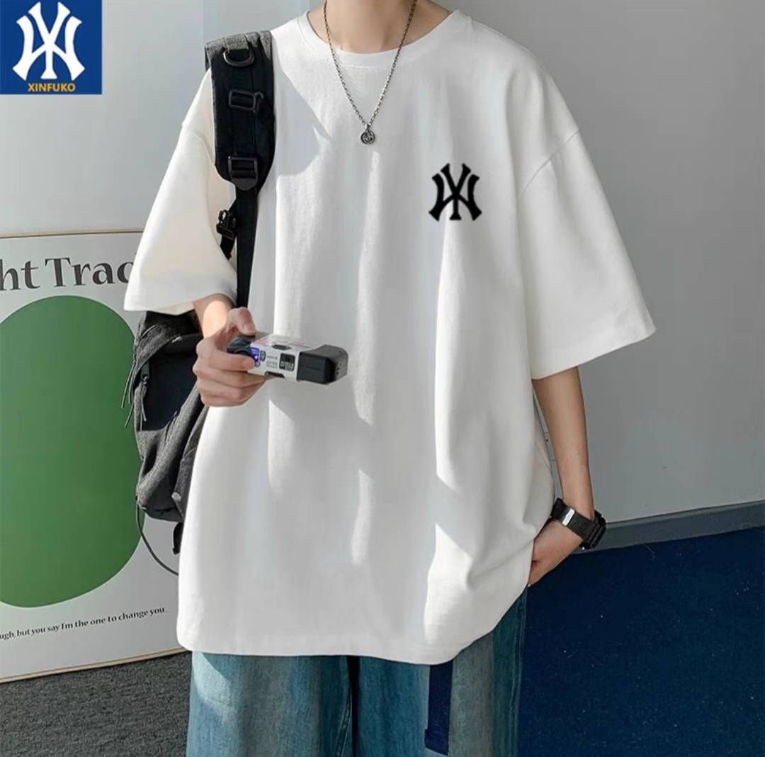 白色短袖t恤男士夏季新款美式潮牌宽松衣服潮流ins男生五分袖体恤