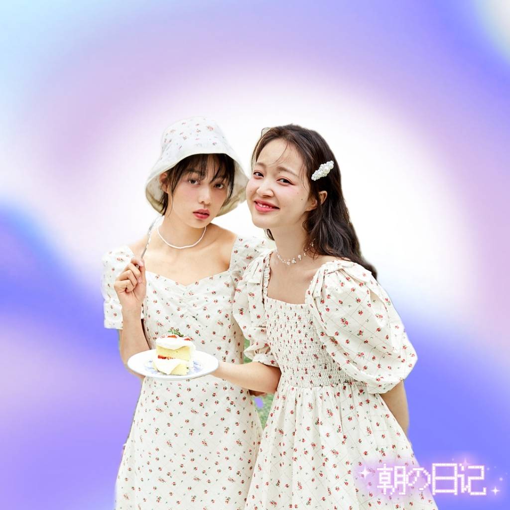 乐町气质甜妹连衣裙2022新款春女装奶油蜜桃蝴蝶结连衣裙