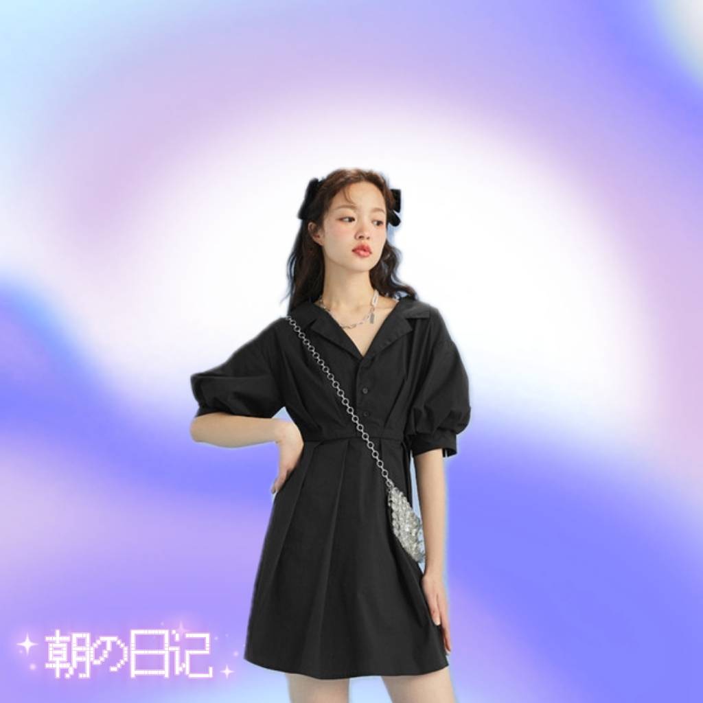 气质法式衬衫连衣裙春装2022女装白色翻领气质甜美连衣裙子