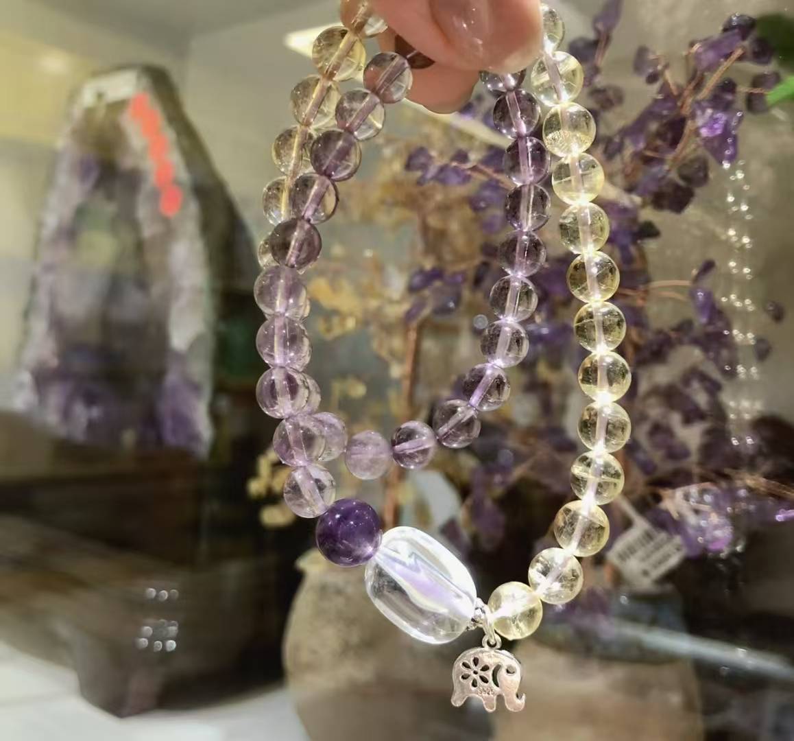 巧恩天然水晶手串招财绿幽灵串珠黄水晶貔貅小众百搭手链女送朋友
