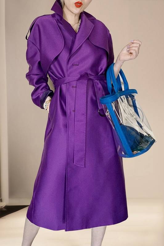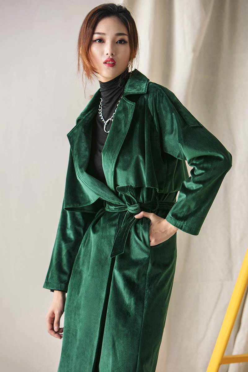 稀有概率2018春季复古丝绒外套女中长款气质收腰风衣女长款过膝