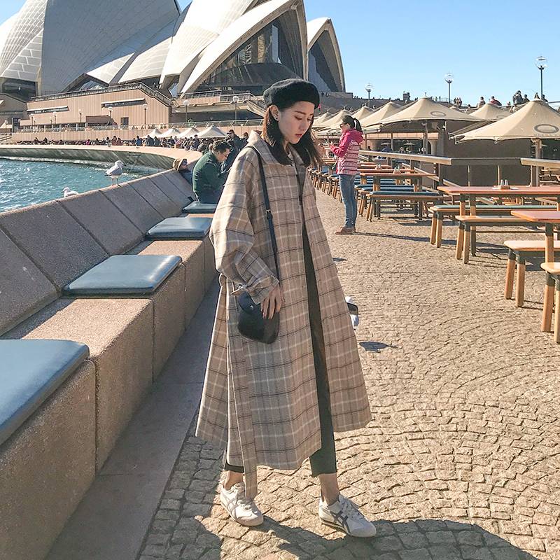风衣女中长款2018新款韩版秋季百搭收腰复古时尚学生过膝格子外套