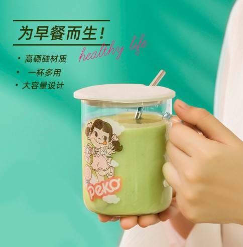 彦良生活字母玻璃杯带勺子ins杯子可爱玻璃杯带吸管