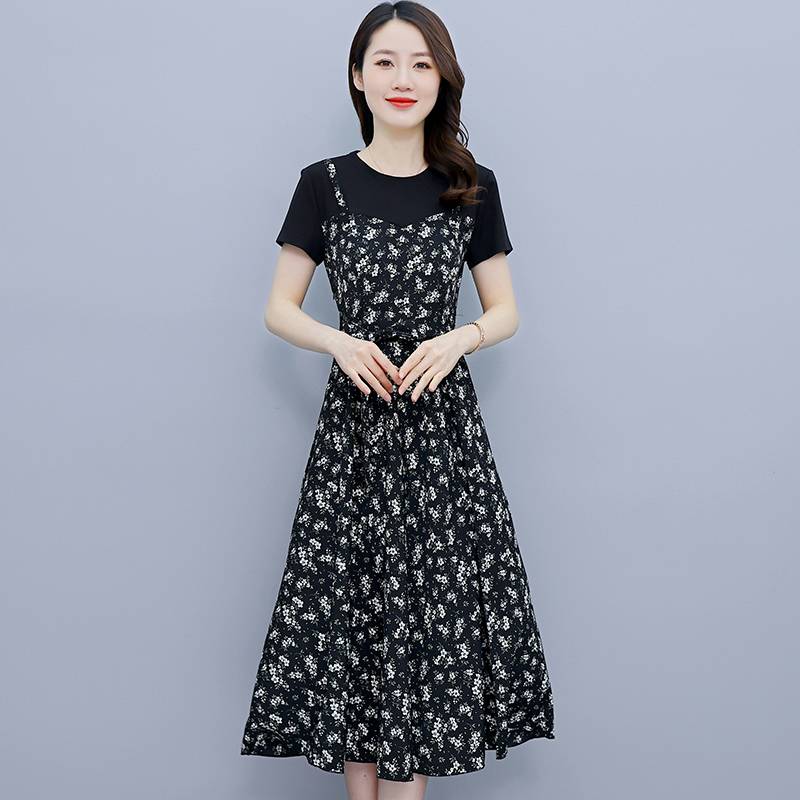 雪纺连衣裙2022夏季新款时尚百搭气质简约风时尚碎花休闲连衣裙