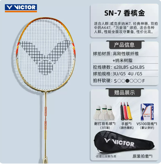 胜利羽毛球拍2022新款纳米7sp全碳素TK30进攻型victor小隼6小鬼斩