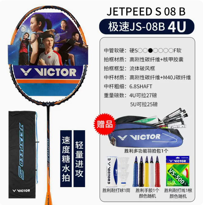 正品VICTOR胜利羽毛球拍js08 糖水拍全碳素单拍速度进攻型极速08