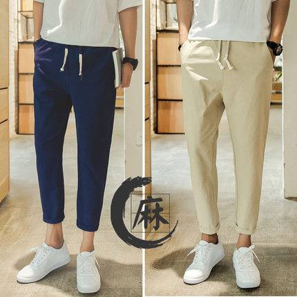 2018秋季新款男士休闲裤九分裤薄款透气纯棉男裤子韩版修身裤子潮