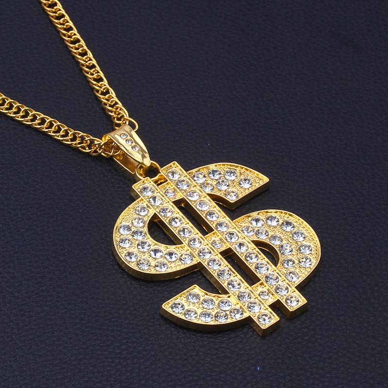 欧美新款饰品个性夸张潮流嘻哈美元男士项链朋克镶钻霸气美金项饰