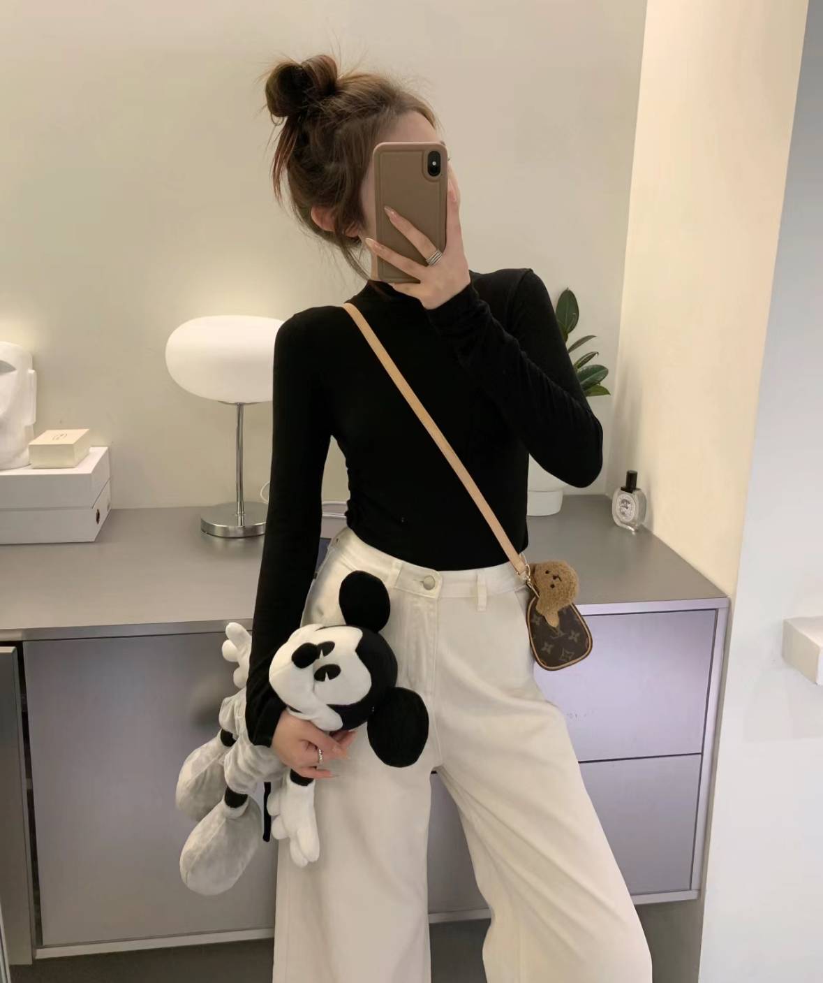 2020春夏新款批发松紧腰高腰牛仔裤女宽松直筒显瘦阔腿长裤