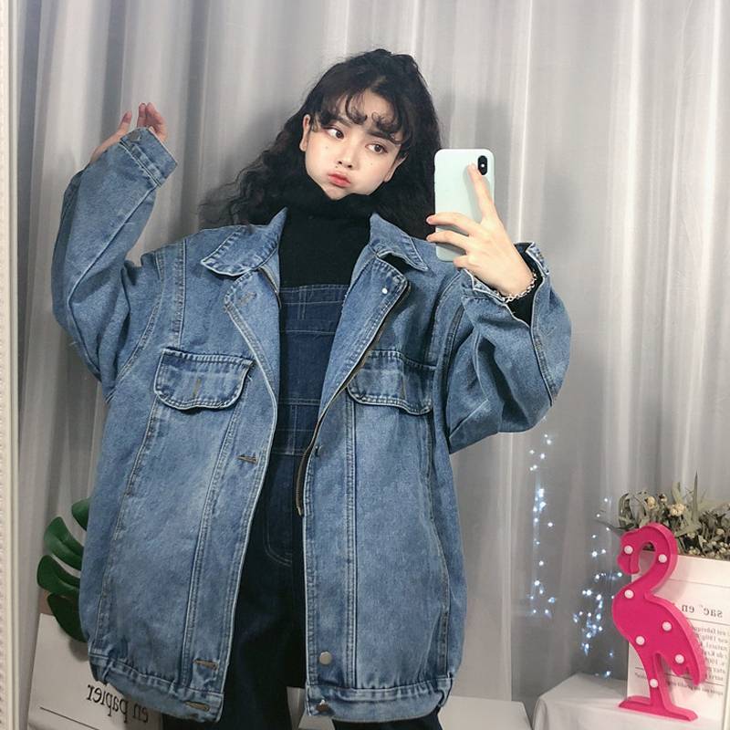 春秋2019新款韩版宽松bf复古牛仔衣外套女中长款网红春季上衣学生