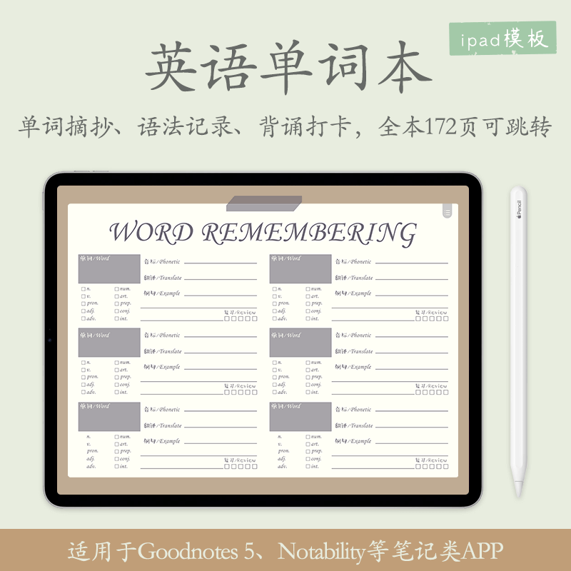 英语单词ipad电子手帐goodnotes/notability学考研模板素材笔记本