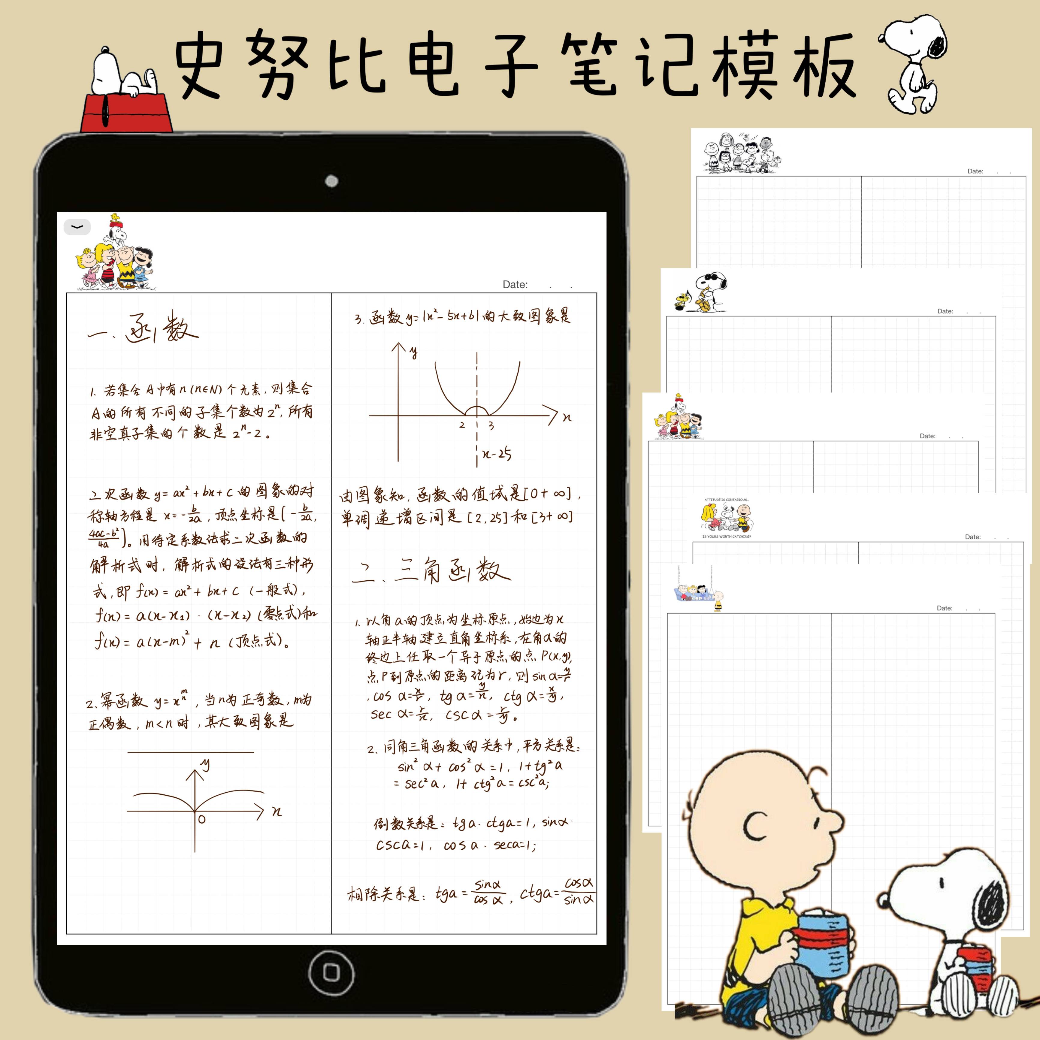 goodnotes/ipad史努比电子笔记模板数学概念本notability可爱ins